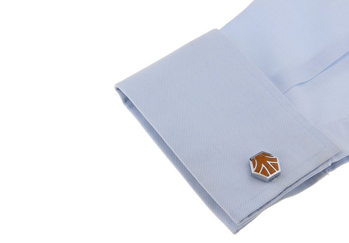 • 商务款 六边形 黄棕色滴胶 电镀白钢 袖扣123398