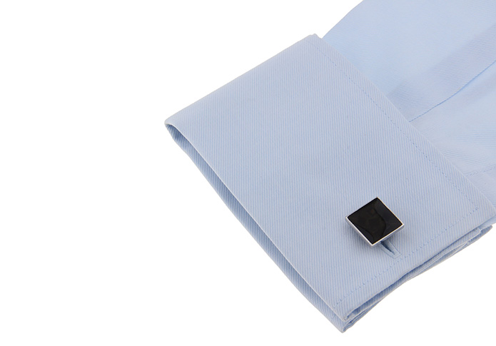 • 简约商务款 黑色滴胶 电镀白钢 袖扣123418