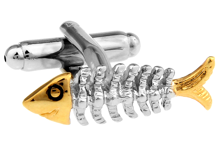 • 动物 鱼骨头 银身 金色头尾 素色金属 双色电镀 袖扣 袖钉 150755