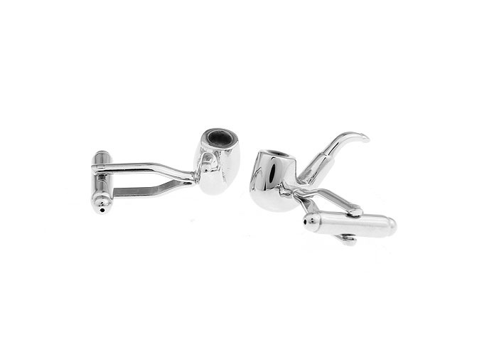 • 生活元素 工具 烟斗 香烟烟嘴 素色光面金属 镀白 袖扣 袖钉 150803