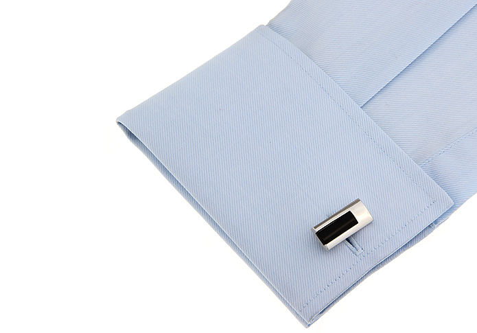 • 长方形 黑色玛瑙石 镀白钢 袖扣 袖钉150819