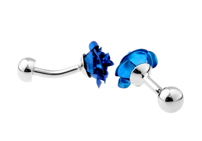 • 生活元素 情人节日 蓝色玫瑰花 蓝色 喷漆 双头 镀白钢 袖扣 袖钉 150965