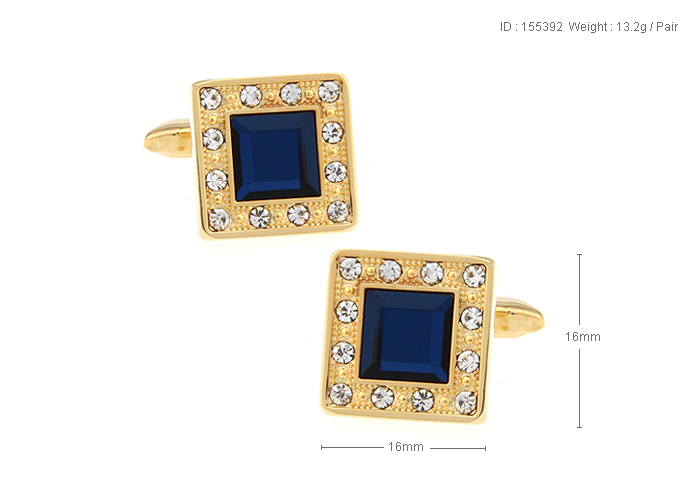 • 正方形 回字形 正方梯形 蓝色玻璃 白色水钻 镀黄金色 袖扣 袖钉155392