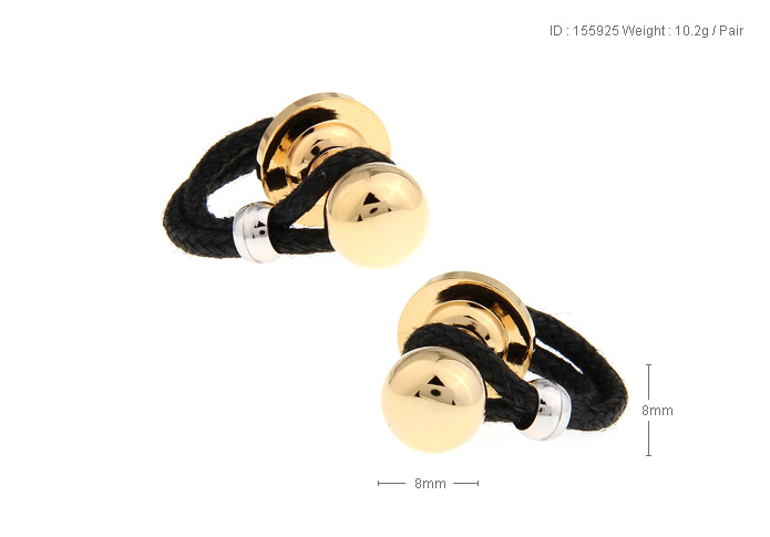 • 球形 球体圆柱 黑色皮绳编织链扣 镀黄金色 袖扣 袖钉155925