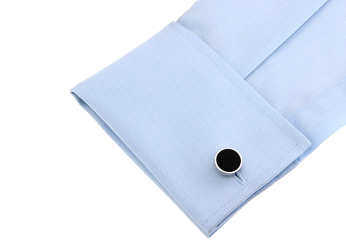 • 圆形 平面 黑色玛瑙石 镀白钢 袖扣 袖钉156005