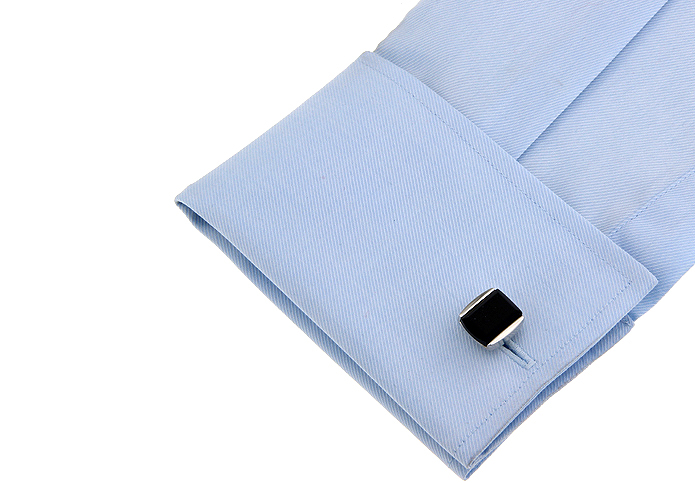 • 正方形弧面 黑玛瑙 镀白钢 袖扣 袖钉156263