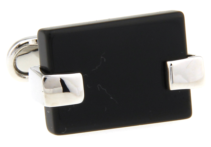 • 长方形 两头卡扣 黑色 玛瑙石 TS 镀白钢 袖扣 袖钉156277