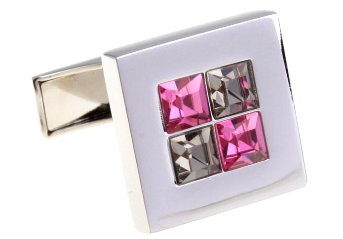 • 正方形 四方格 粉色 灰色 方钻 TS 镀白钢 袖扣 袖钉156280