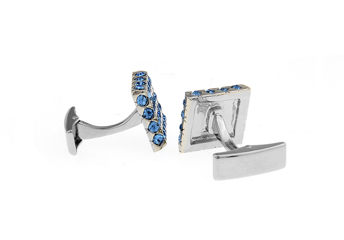 • 正方形 四边单排水钻 正面4*4 蓝色水钻 镀白钢 袖扣 袖钉156317