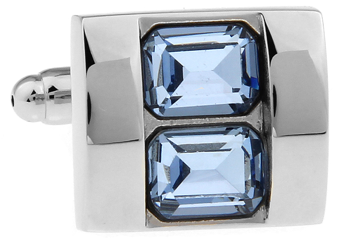 • 长方弧形 浅蓝色长方钻 镀白钢 袖扣 袖钉156377
