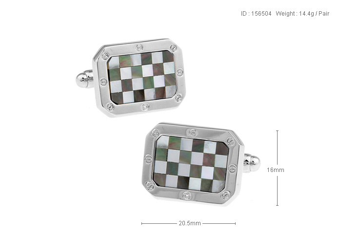 • 长方八角形 白色珍珠母贝拼蝴蝶贝 贝壳拼石 Θ粒子 镀白钢 袖扣 袖钉156504