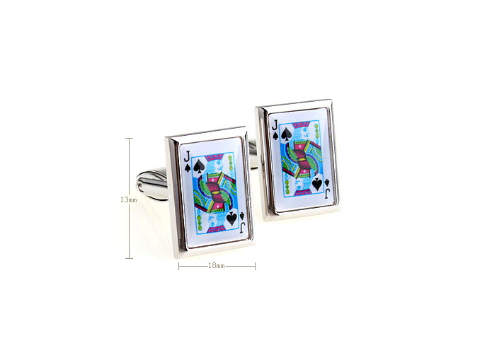 • 赌博 扑克 黑桃J 查尔斯一世的侍从 丹麦人霍克拉 白色底 印刷 镀白钢 袖扣 袖钉156513