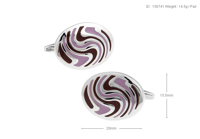 • 椭圆形 抽象S扭曲花纹 紫色 浅紫色 双色烤漆 镀白钢 袖扣 袖钉156741