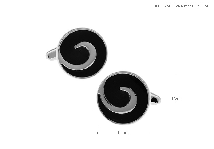 • 圆形 月牙钩 黑色烤漆 镀白钢 袖扣 袖钉157458