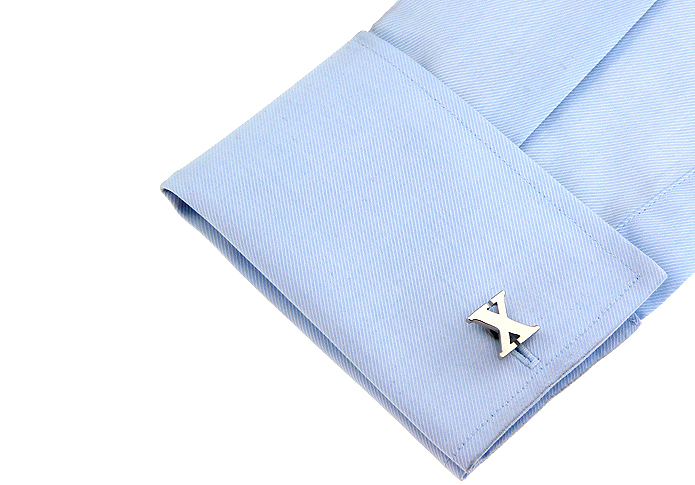 • 大写镂空字母 X 常规字体 素色光面金属 镀白钢 袖扣 袖钉157514