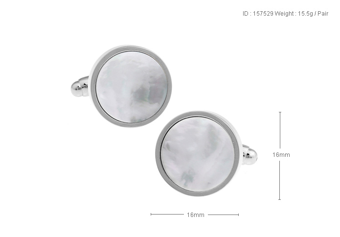 • 圆形 白色珍珠母贝 白贝 镀白钢 袖扣 袖钉157529