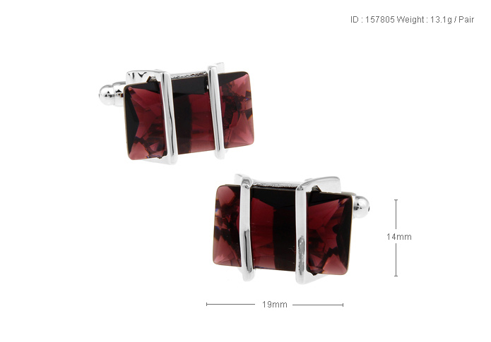 • 镂空双边卡扣 长方形 紫色玻璃 镀白钢 袖扣 袖钉 157805
