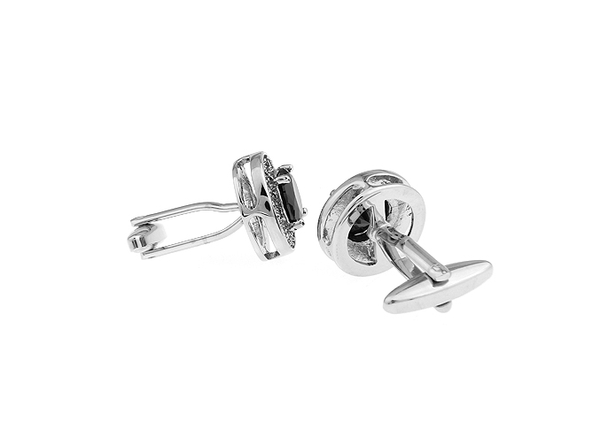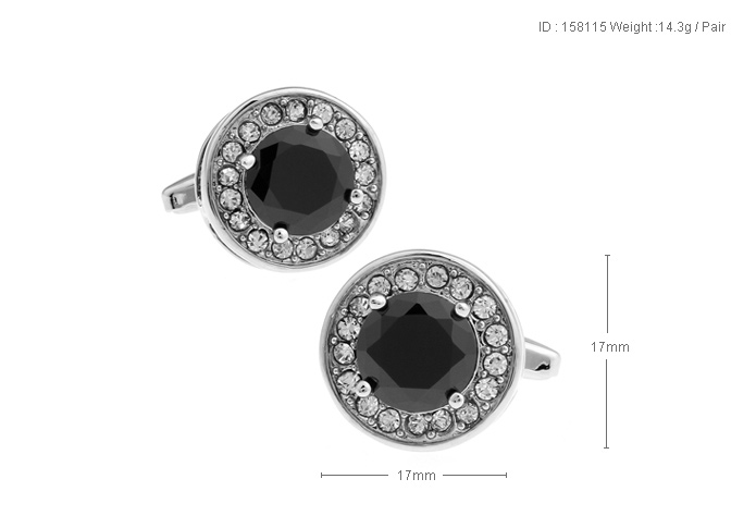 • 圆形 黑色烤漆 白色水钻 镀白钢 袖扣 袖钉 158115