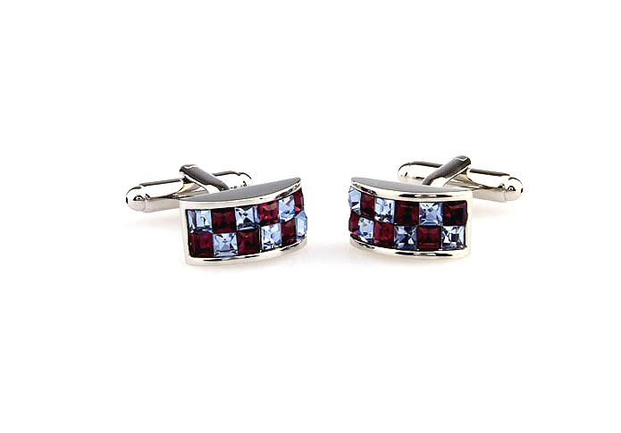 • 半月拱桥形 紫色 蓝色 方钻 镀白钢 袖扣 袖钉 158129