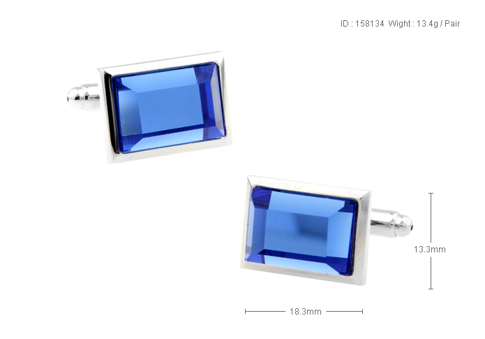 • 长方形 长方梯形 蓝色玻璃 镀白钢 袖扣 袖钉158134