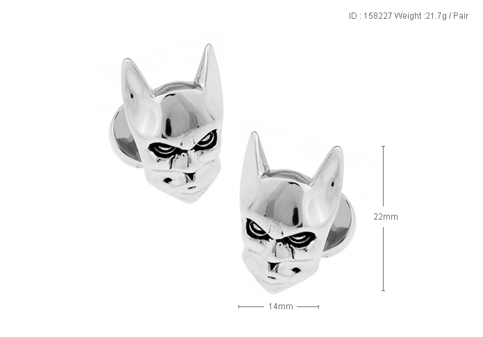 • 电影 蝙蝠侠头像 素色光面金属 黑色烤漆 双头 镀白钢 袖扣 袖钉158227