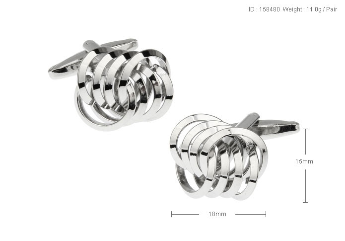 • 环球形 四环相绕 素色拉丝金属 镀白钢 袖扣 袖钉 158480