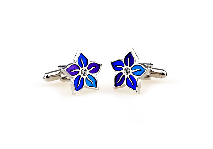 • 生活元素 五瓣花 蓝紫烤漆 镀白钢 袖扣 袖钉160045