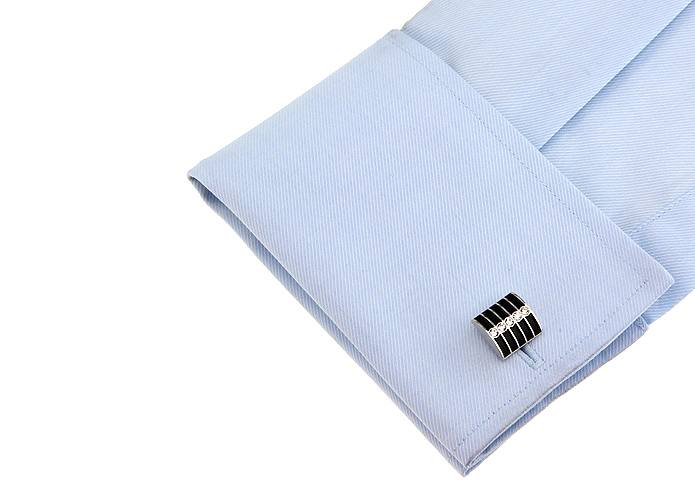 • 正方弧形 白色水钻 黑色烤漆 镀白钢 袖扣 袖钉 160061