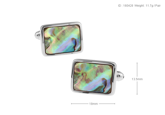 • 长方形 彩色贝壳 镀白钢 袖扣 袖钉160428