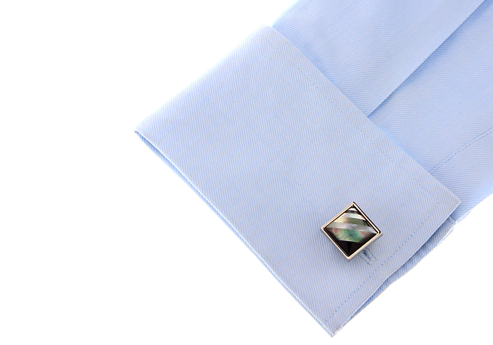 • 正方形 贝壳条纹拼图 镀白钢 袖扣 袖钉 160621