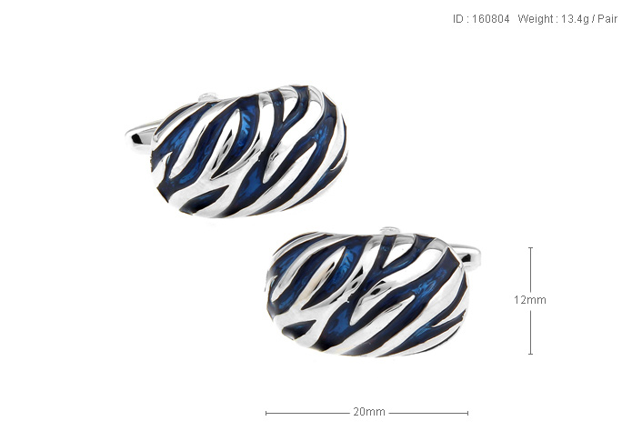 • 椭圆形 蓝色烤漆 镀白钢 袖扣 袖钉 160804