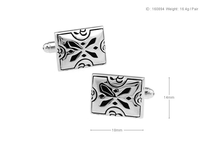 • 长方形 黑色烤漆 镀白钢 袖扣 袖钉 160894