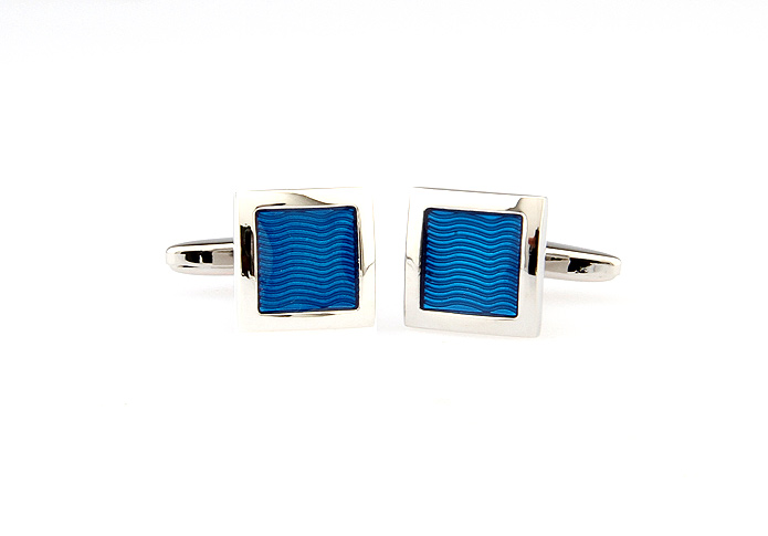• 正方形 蓝色烤漆 镀白钢 袖扣 袖钉 160906