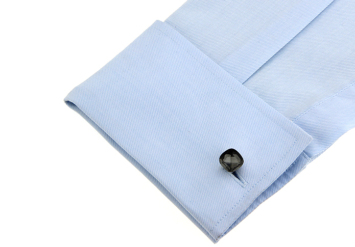 • 正方形 灰色千面玻璃 镀白钢 袖扣 袖钉 161052