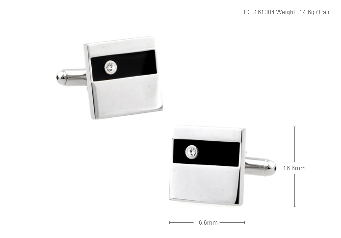 • 正方形 黑色烤漆 白色水钻 镀白钢 袖扣 袖钉 161304
