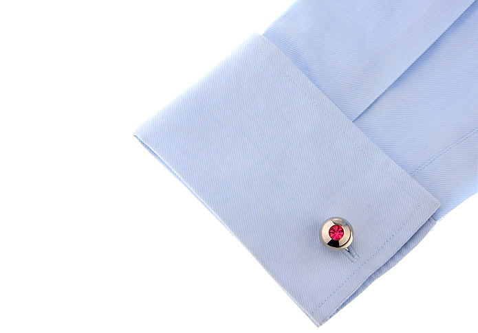 • 圆弧形 粉色水钻 镀白钢 袖扣 袖钉 161306
