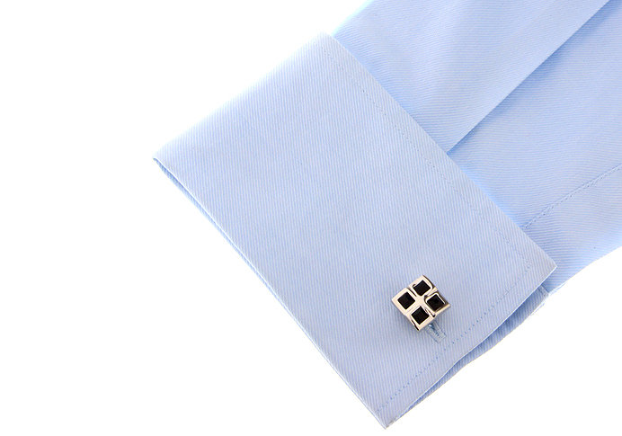 • 正方形 黑色方钻 镀白钢 袖扣 袖钉 161489
