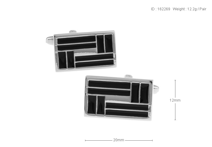 • 长方形 黑色条纹烤漆 镀白钢 袖扣 袖钉162269