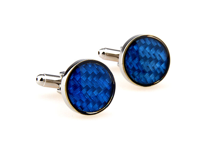 • 圆形 织物 蓝色 镀白钢 袖扣 袖钉162499