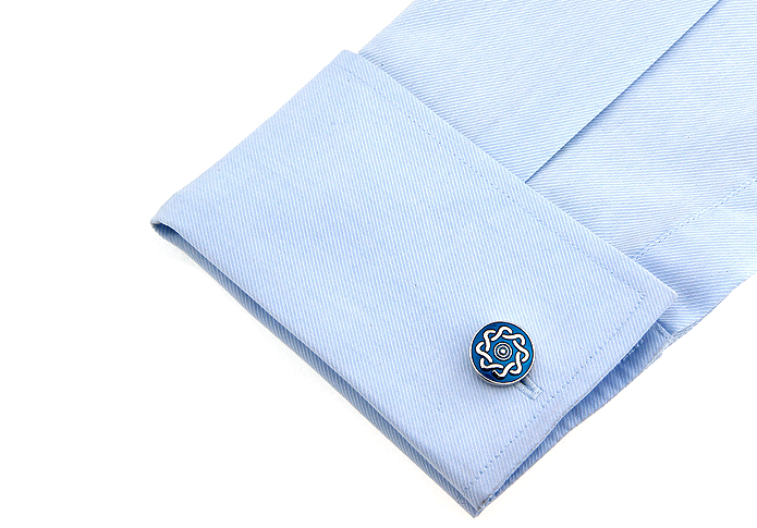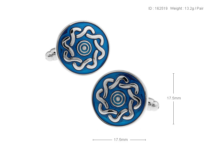 • 圆形 蓝色烤漆 镀白钢 袖扣 袖钉162519