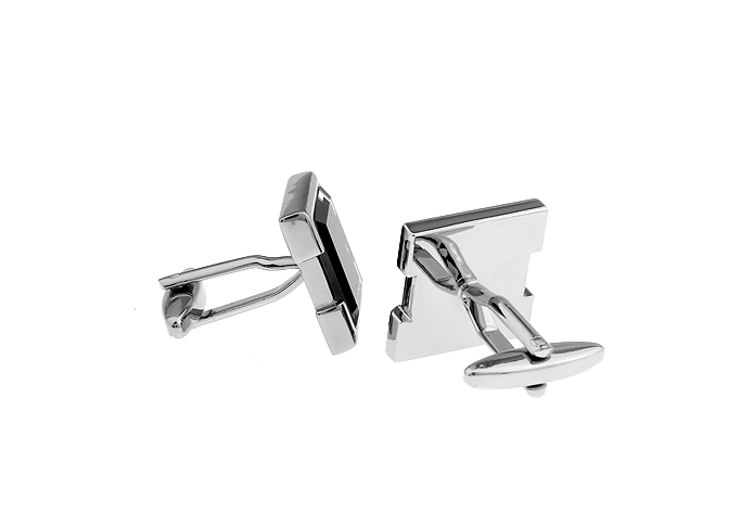 • 正方形 白色水钻 黑色玻璃 镀白钢 袖扣 袖钉 163272