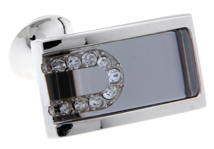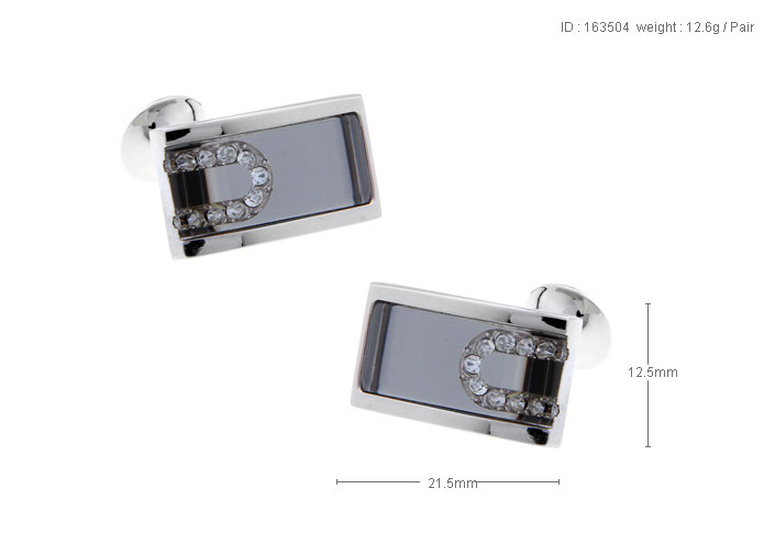 • 长方形 白色水钻 灰色玻璃 双头 镀白钢 袖扣 袖钉 163504