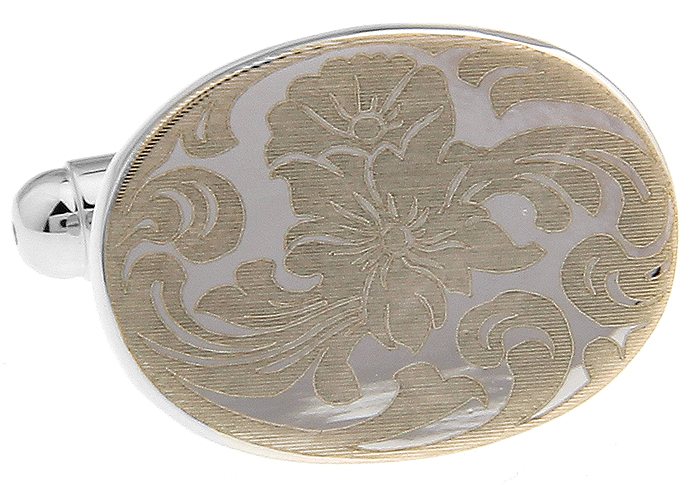 • 椭圆形 花 激光镭射 镀白钢 袖扣 袖钉 163893