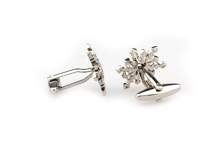 • 生活元素 天气 飘雪 雪花 素色光面金属 镀白钢 袖扣 袖钉164796