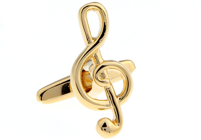 • 音乐符号 高音谱号音符 素色光面金属 镀黄金色 袖扣 袖钉164837