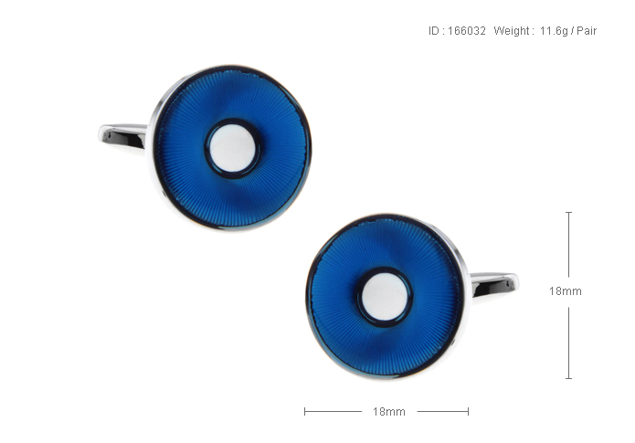 • 圆形 蓝色烤漆 镀白钢 袖扣 袖钉 166032