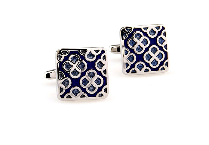 • 正方形 彩色珐琅 镀白钢 袖扣 袖钉166059