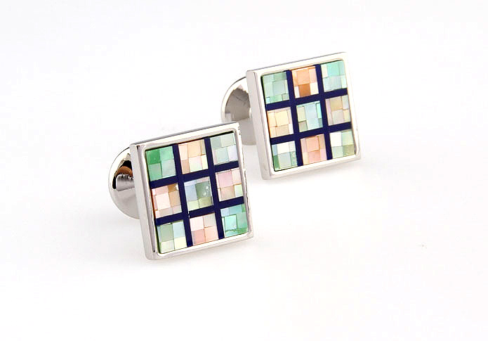 • 正方形 贝壳拼图 镀白钢 袖扣 袖钉 166339