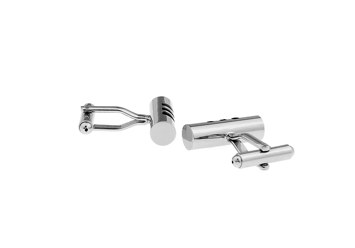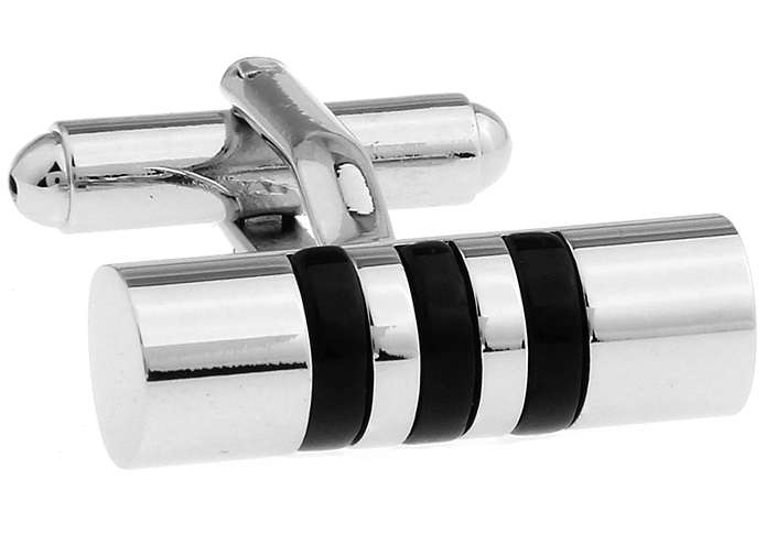 • 圆柱体 嵌黑色猫眼石 镀白钢 袖扣 袖钉 166397