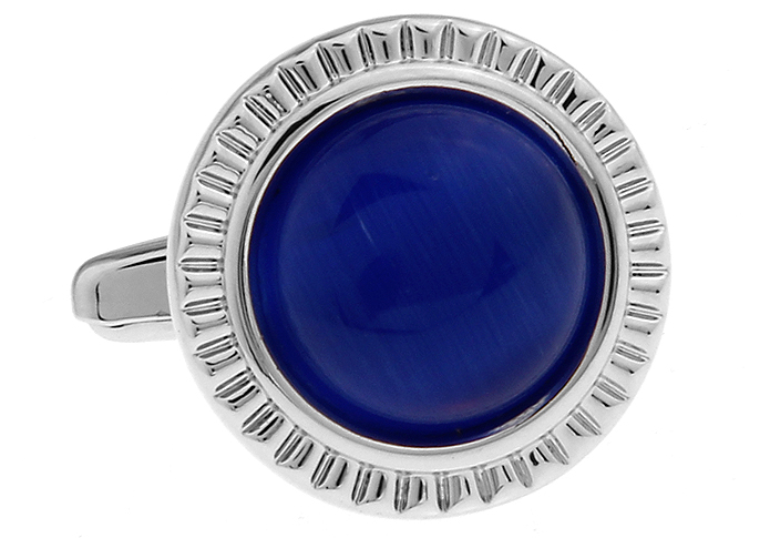 • 圆形 蓝色玻璃猫眼石 镀白钢 袖扣 袖钉 166550